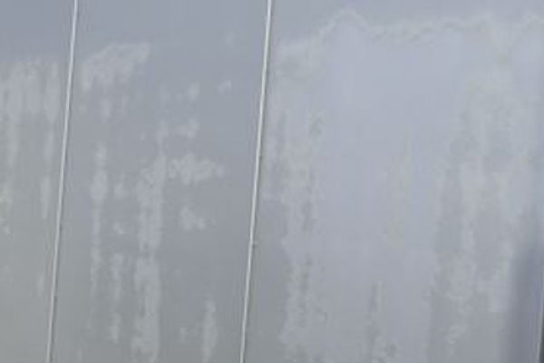 Bei einer vor ca. 12 Jahren ausgeführten Vor-Ort-Beschichtung platzte der aufgebrachte Klarlack ab. Die neu durchgeführte Sanierung erfolgte mit einem Fluorpolymer-Flüssiglack mit sehr hoher Brillianz. Eine Klarlackbeschichtung ist hier nicht mehr notwendig.