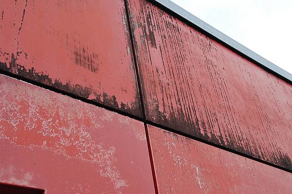 Die rote Metallfassade war teilweise schwarz von Russ und anderen Umwelteinflüssen. Eine vorherige Sanierung mit einem farblosen Lacküberzug zeigte sich als untauglich und bot ein hässliches Bild, das nicht zur Mieterin der Liegenschaft, einer Industriebäckerei, passte, die nach höchsten Qualitäts- und Hygienestandards hochwertige Kleinbrote herstellt. Die Immobilienbesitzerin war gefordert, schnell zu handeln.