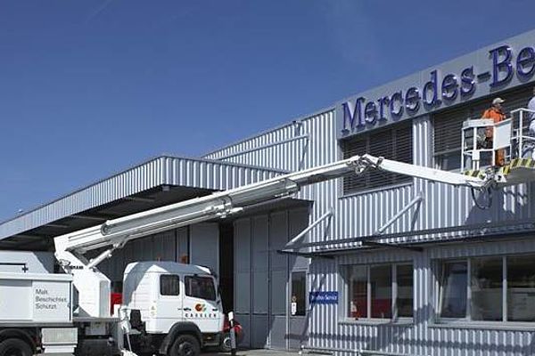 Fassadenhülle optisch auffrischen, passend zum Erscheinungsbild der Marke Mercedes Benz. Oberflächen wetterbeständig und mechanisch belastbar, Langzeitschutz gegen aggressive Umwelteinflüsse.